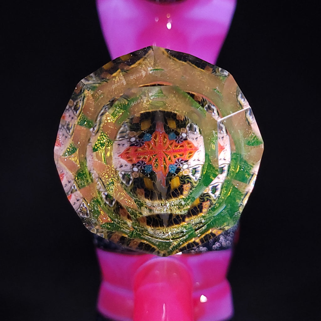 2 uptakes and 1 drain on each mini Tidal Wave 🌊 paired with magical mille made by SlickRick 💎 all over, but especially the faceted mib on the booty. (acts as a balance point to hold ⚖️ and looks badass) Making this piece a true 1 of 1 🌟 magical blend of form and function! 🌀