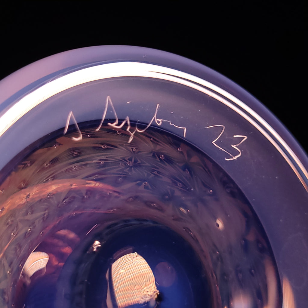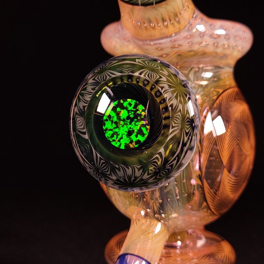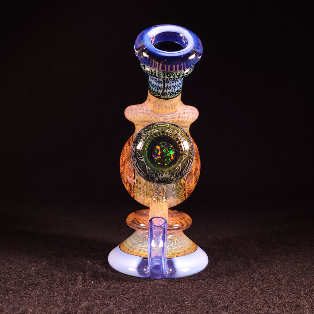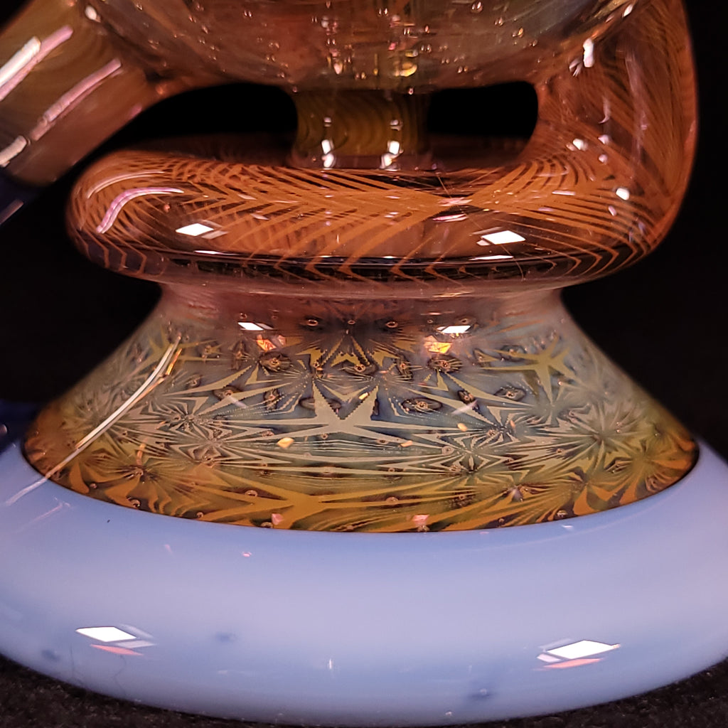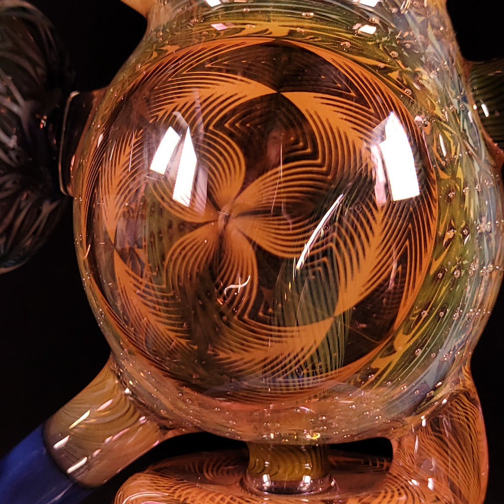 Thee bloop cycler is the newest design from Sizelove, and it hits like a beast!!! You truly have to experience it to know. This piece features his signature OG Bubble Trap with a gold fume tech section that has been wagged out