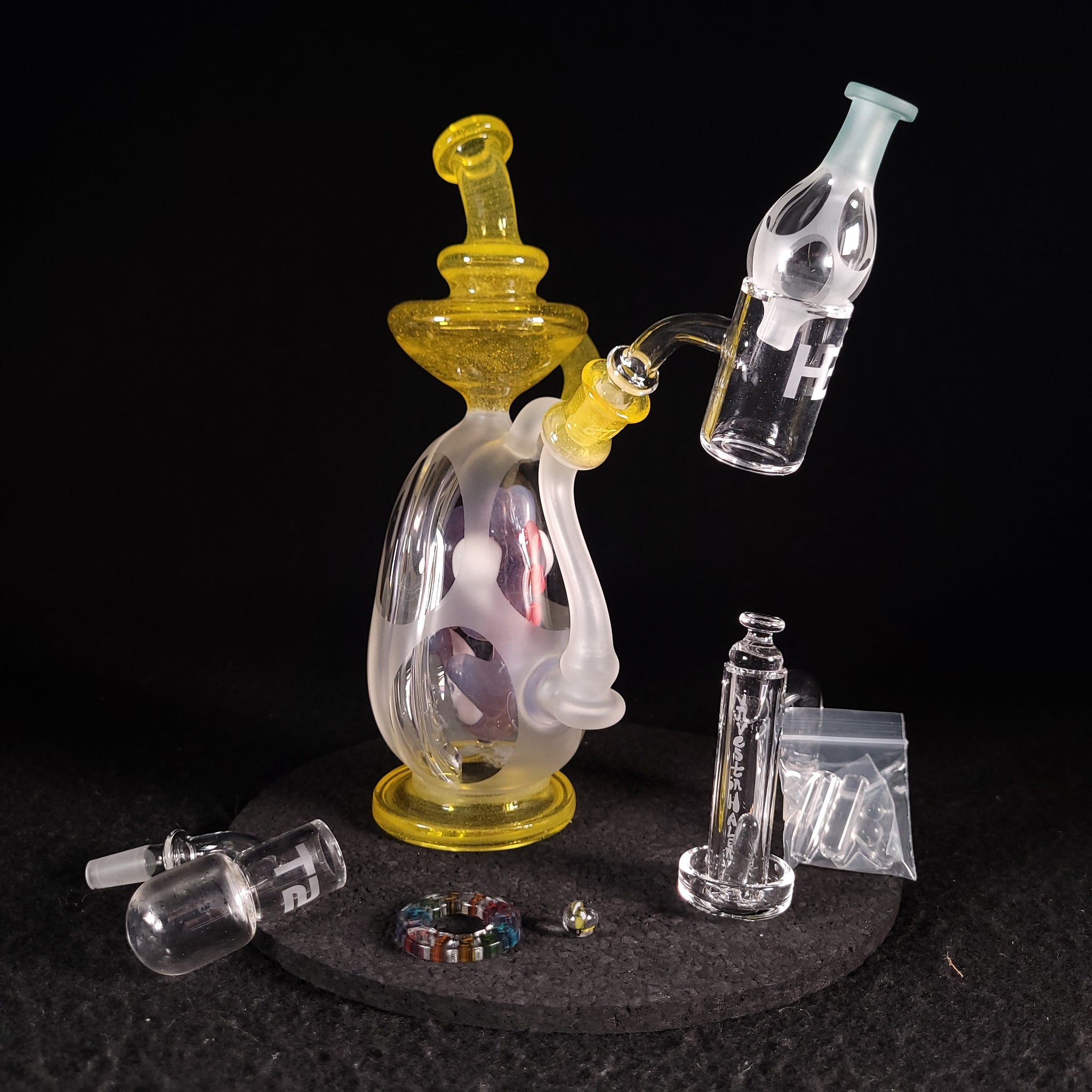 BTGB rare Yoshi Recycler  💜💚 - $3000 (used piece, but has been acid bathed and triple ISO cleaned looks basically new, with minor water marks you can see when you only hold it up to the light) DOES NOT AFFECT FUNCTION 🤠💎🌀